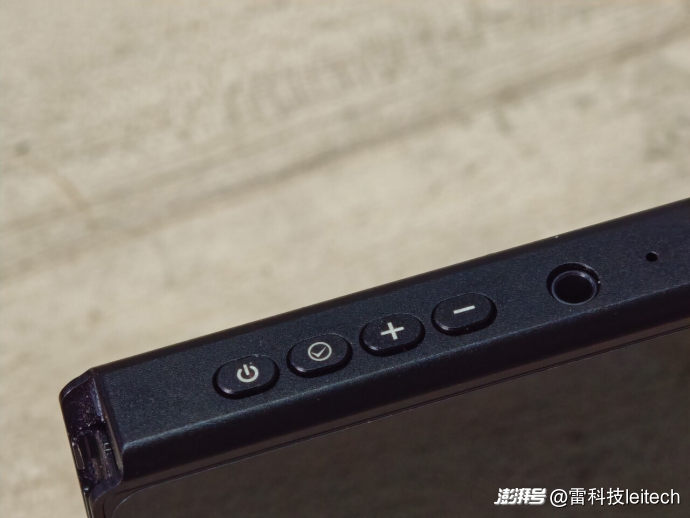 物理按鍵基本集中在機(jī)身頂部,從左到右依次為電源、菜單、音量增、音量減,最后是3.5mm耳機(jī)接口。