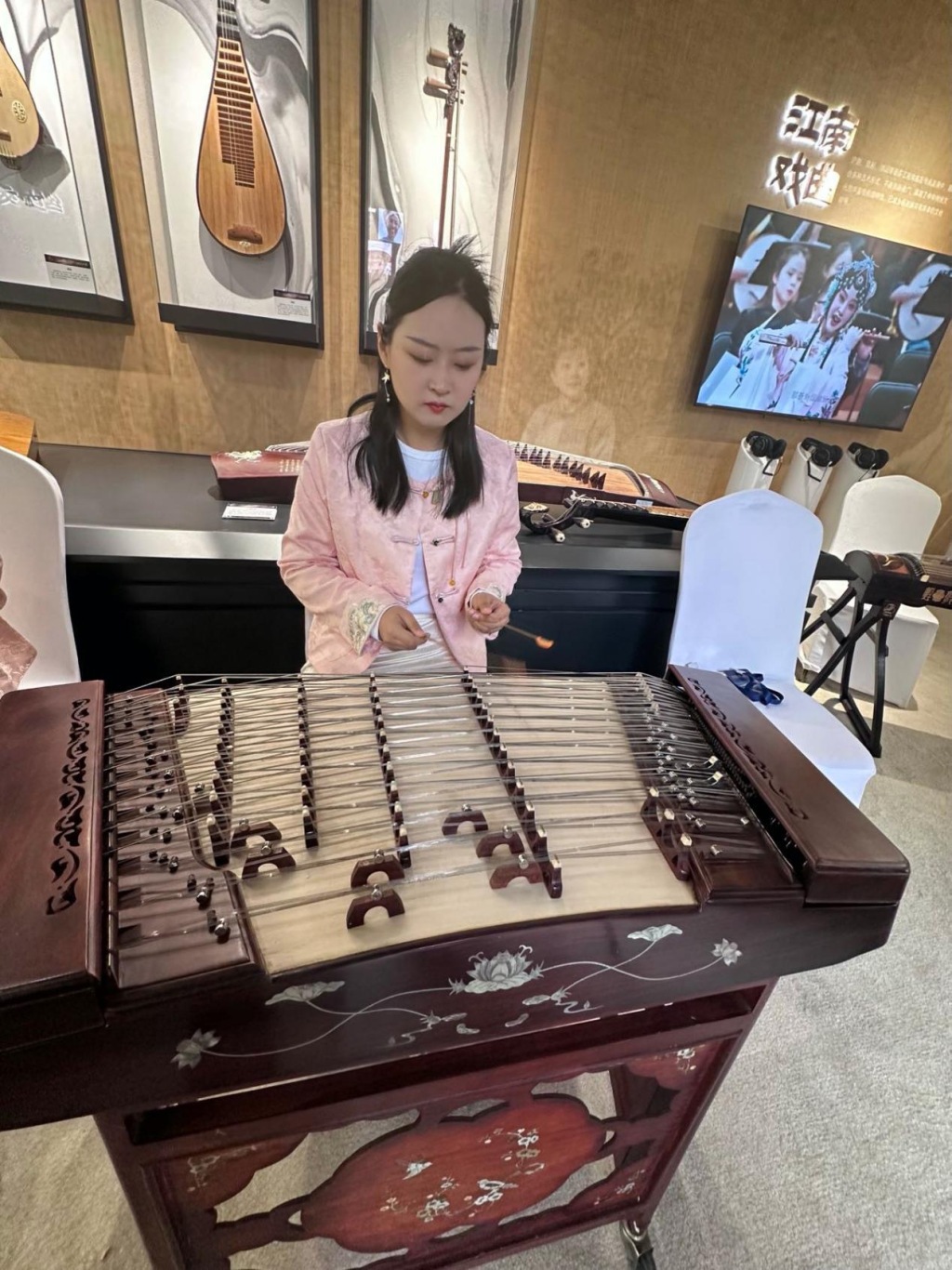 在“百工·智造”展廳,海派剪紙傳承人現(xiàn)場創(chuàng)作的“石榴籽”作品與C919大飛機(jī)模型相映成趣;“市集·商貿(mào)”展廳以多媒體機(jī)械墻演繹老字號(hào)傳奇,如大白兔奶糖、英雄金筆、上海牌手表等承載幾代人記憶的品牌,展現(xiàn)了從“三轉(zhuǎn)一響”到國貨新潮的時(shí)代變遷?!敖z竹·交響”展廳里,來自上海音樂學(xué)院的絲弦五重奏《映山紅》悠揚(yáng)響起,傳統(tǒng)戲曲與西方交響樂交融的《梁祝》,以及譚抒真先生1935年制作的中國首把專業(yè)小提琴,共同詮釋了海派文化“海納百川”的品格。