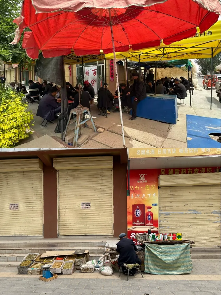 而如今,街道空蕩如同被抽去麥粒的麥穗,曾經(jīng)的戲臺(tái)上面堆放著幾處木料,農(nóng)貿(mào)市場(chǎng)僅存的幾家店鋪掛著“清倉(cāng)甩賣”的褪色橫幅。一陣風(fēng)吹過,卷起地上散落的塑料袋,發(fā)出沙沙的響聲,像是小鎮(zhèn)最后的嘆息。