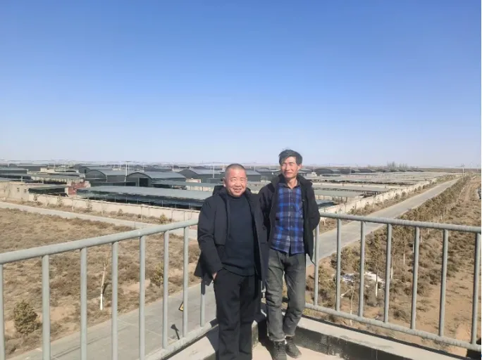 我的父親(左)與孫干爹(右),背后是金灘羊養(yǎng)殖基地