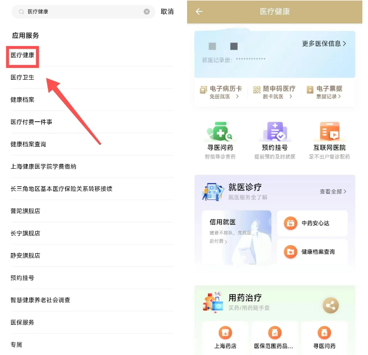 第一步:“隨申辦市民云”APP首頁(yè)點(diǎn)擊“醫(yī)療健康”,或在搜索框搜索進(jìn)入【醫(yī)療健康】服務(wù)。