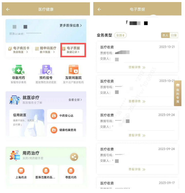 “隨申辦市民云”APP醫(yī)療電子票據(jù),完成繳費(fèi)、看病付費(fèi)后,即可輕松查看、查詢歸集相關(guān)票據(jù)~
