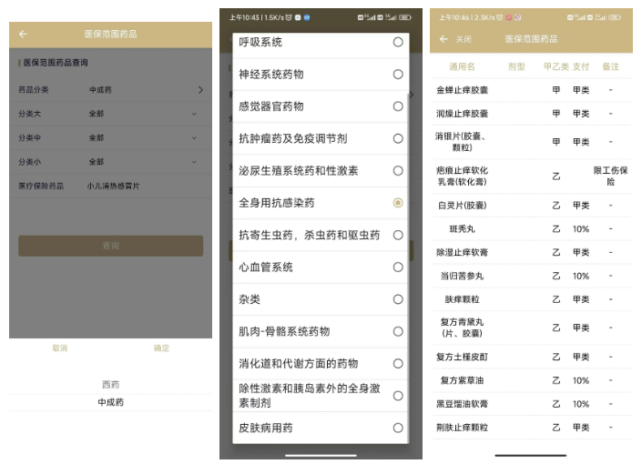 3、你也可以根據(jù)自身用藥情況選擇分類,查詢醫(yī)保范圍內(nèi)藥品(以皮膚科分類藥品為例)。