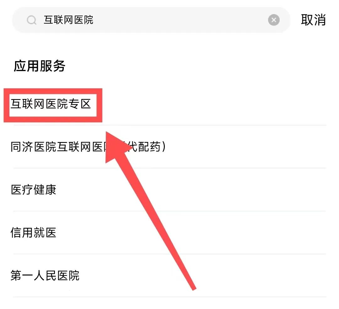 第一步:打開(kāi)“隨申辦市民云”APP,首頁(yè)搜索【互聯(lián)網(wǎng)醫(yī)院專區(qū)】進(jìn)入。