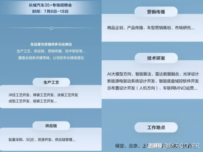 一位長城在職員工坦言,“35+”的招聘信息在公司內(nèi)部宣傳不多,他了解的也比較少,“但如果這次招聘真能落地,對我們來說是好事,能補(bǔ)充一些有經(jīng)驗、有拼勁的人進(jìn)來”。