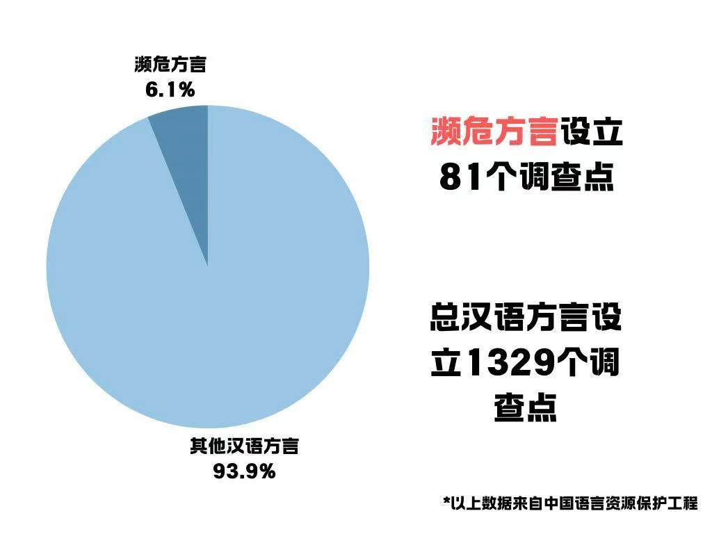 據(jù)中國(guó)語(yǔ)言資源保護(hù)工程采錄展示平臺(tái)顯示,全國(guó)漢語(yǔ)方言總數(shù)1329個(gè)調(diào)查點(diǎn),已有81個(gè)調(diào)查點(diǎn)出現(xiàn)瀕危方言,比例達(dá)到16.4:1,主要集中在華東、華南地區(qū),并呈現(xiàn)向西北擴(kuò)散的趨勢(shì)。
