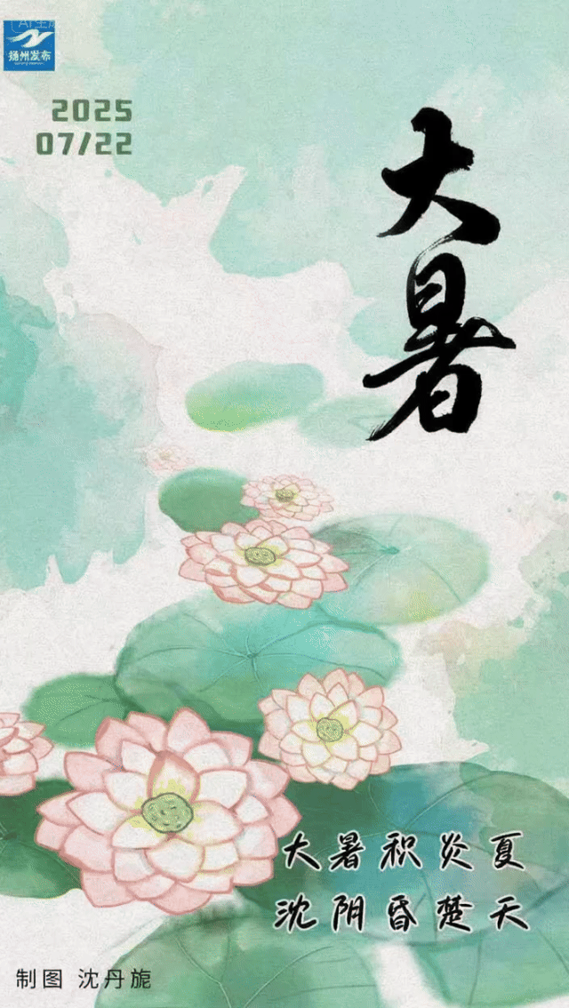 “大暑三秋近,林鐘九夏移?!?月22日,我們迎來(lái)大暑節(jié)氣。大暑是夏季最后一個(gè)節(jié)氣,但不是夏天的終結(jié),正值“三伏天”的中伏前后,是一年當(dāng)中最熱的節(jié)氣,濕熱交蒸。
