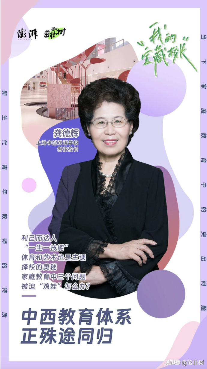 華旭雙語的門前,種植了一棵80余年樹齡的櫸樹。這一生,作為中國基礎教育現(xiàn)代化的見證者、參與者、奉獻者,龔德輝把自己看作是孩子們的托舉者,在《櫸之賦》中,她寫下心之所向:“冀其才日豐,其德日馨,其象萬千”。