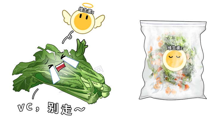 結(jié)果發(fā)現(xiàn),隨著時間變長,新鮮蔬菜的維生素C損耗率大大增加,而冷凍蔬菜卻能保住大部分維生素C和礦物質(zhì)。