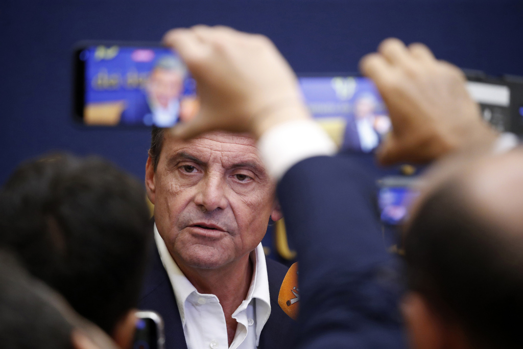 當(dāng)?shù)貢r間2025年7月29日,意大利羅馬,眾議院新聞發(fā)布廳,行動黨秘書卡洛·卡倫達(dá)在依維柯(Iveco)新聞發(fā)布會上發(fā)表講話。