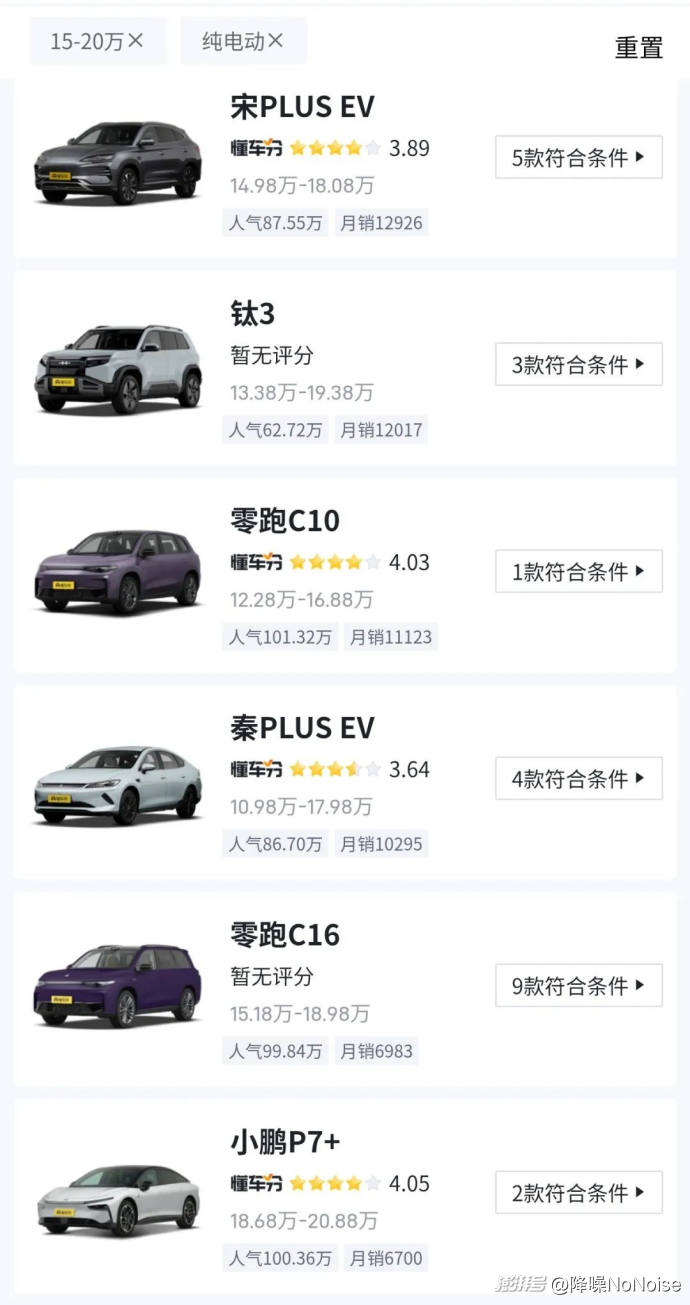 ▲懂車帝上15萬~20萬區(qū)間內(nèi)的純電動車型有200余款