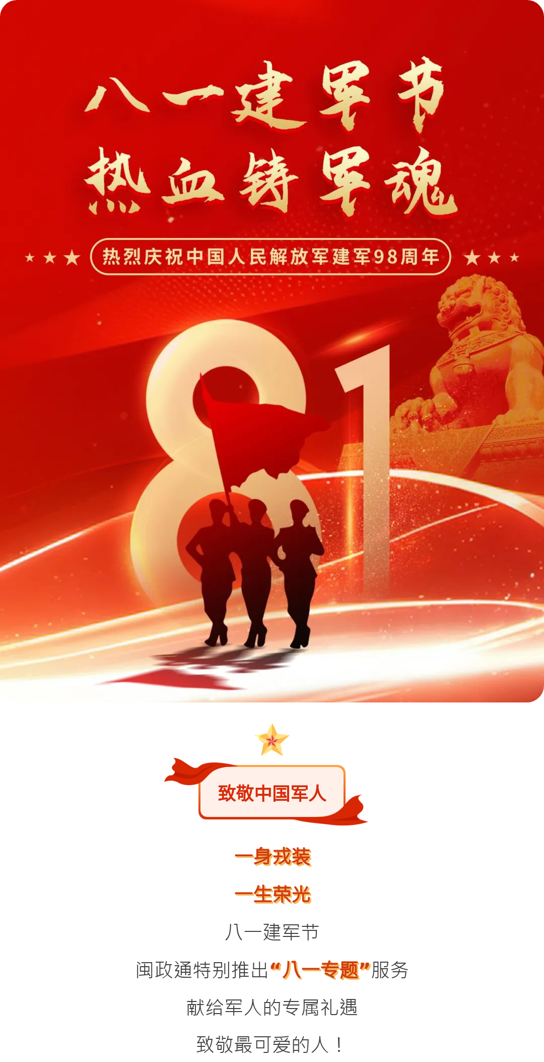 八一建軍節(jié) | 閩政通“八一專題”上線!獻(xiàn)給軍人的專屬禮遇
