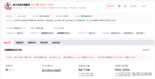 與此同時(shí),麻六記的線上銷售也面臨著一定的壓力。據(jù)大多多數(shù)據(jù)顯示,近30日內(nèi),抖音麻六記官方旗艦店掉粉2.2萬,單場直播平均銷售額僅為5萬至7.5萬元。
