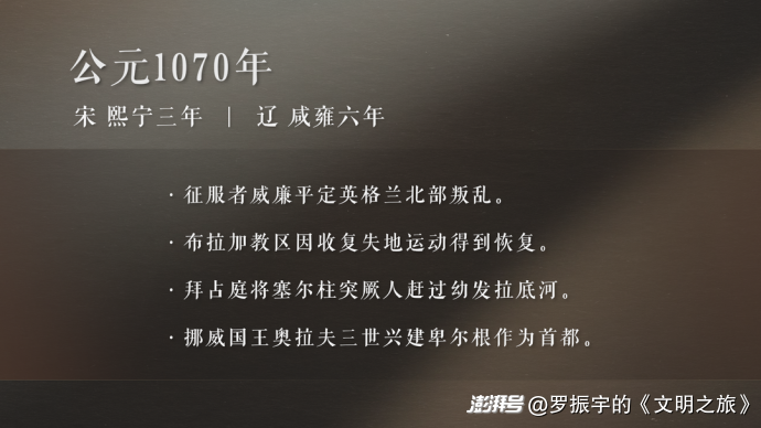 你好,這里是《文明之旅》。歡迎你,穿越到公元1070年,大宋熙寧三年,大遼咸雍六年。
