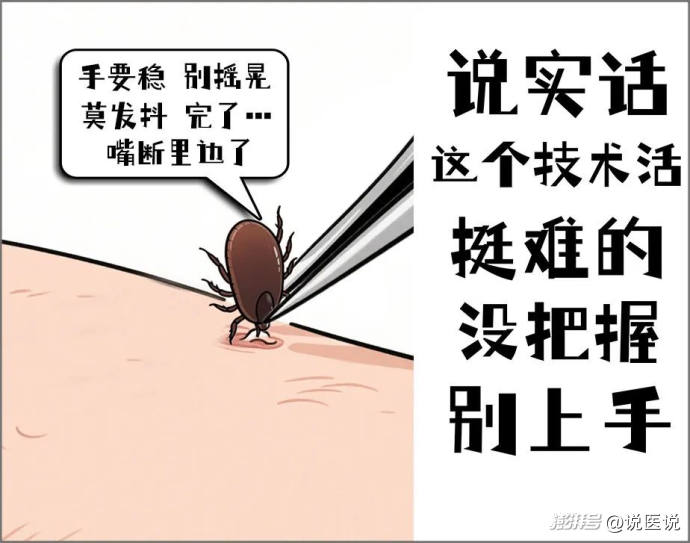 1.直接拍死、捏死以及用手生拉硬拽,都是危險(xiǎn)操作,會(huì)增加感染風(fēng)險(xiǎn)??捎镁凭磕ǎ屗白淼埂焙?,用尖頭鑷子夾住頭部口器,垂直向上完整拔出,用碘伏給傷口消毒后,去找醫(yī)生看看更穩(wěn)妥。