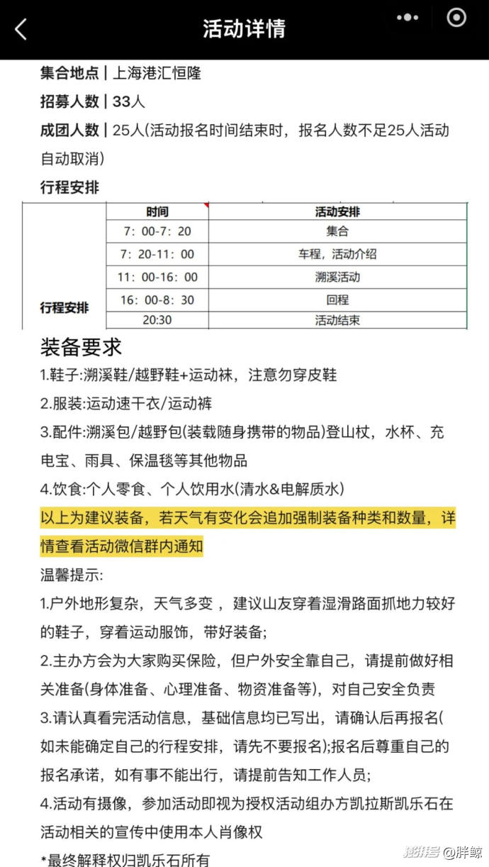 胖鯨注意到,這些活動(dòng)參與門檻都比較低,而且行程安排合理、服務(wù)細(xì)致,確保參與者在活動(dòng)中能夠得到充分保障,體驗(yàn)戶外運(yùn)動(dòng)的樂趣和意義。