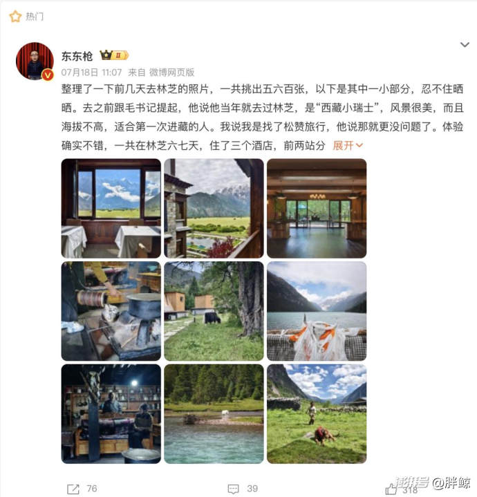 東東槍為一次林芝之行連發(fā)數(shù)條微博