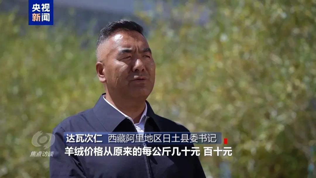 西藏阿里地區(qū)日土縣委書(shū)記 達(dá)瓦次仁:羊絨價(jià)格從原來(lái)的每公斤幾十元、百十元基本現(xiàn)在穩(wěn)定到了三百多元每公斤。
