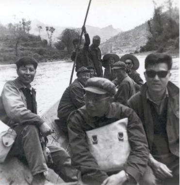中鐵二院原總工程師李澤民(左一)與勘測隊在成昆線