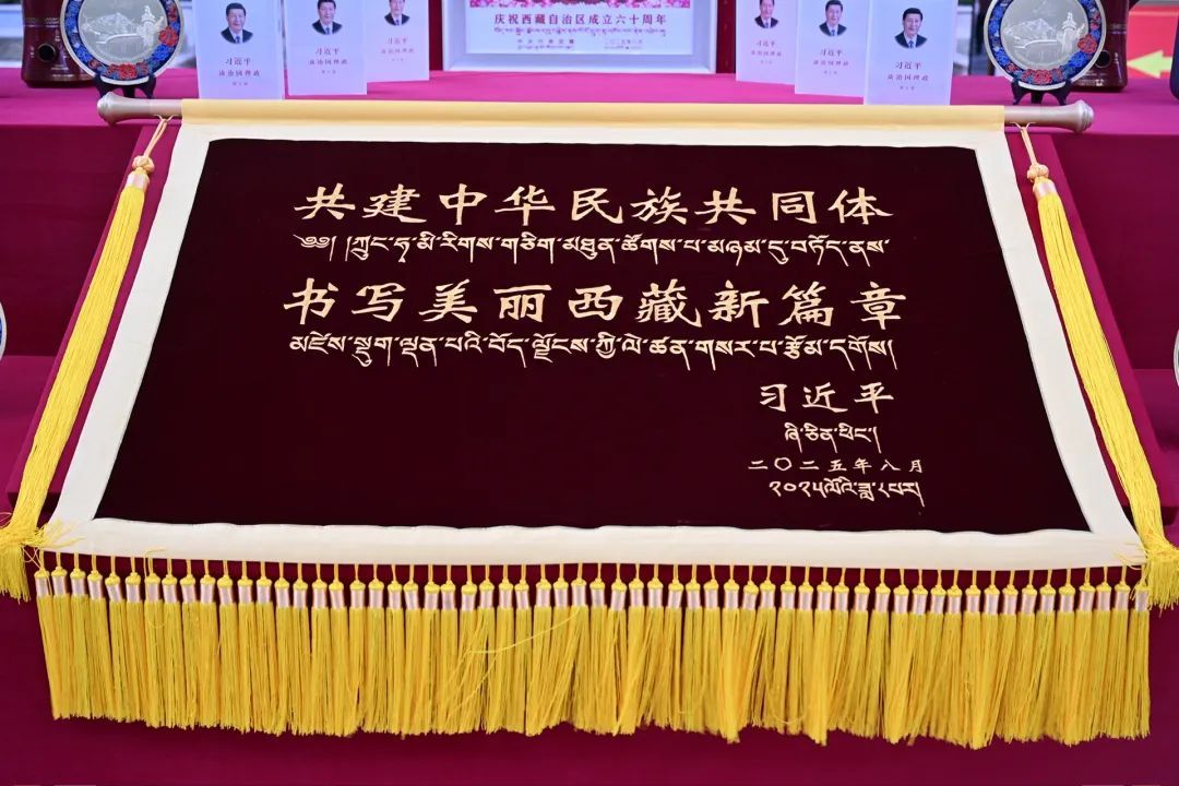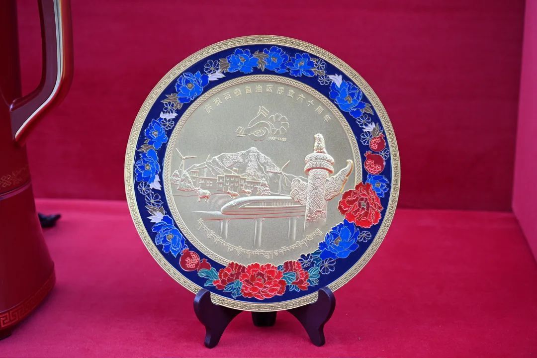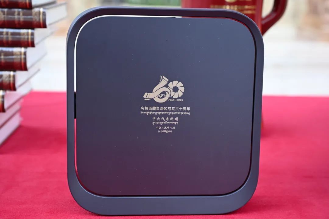 為表達(dá)以習(xí)近平同志為核心的黨中央的親切關(guān)懷和全國人民的深情厚誼,出席西藏自治區(qū)成立60周年慶?;顒?dòng)的中央代表團(tuán)向西藏贈(zèng)送紀(jì)念品。