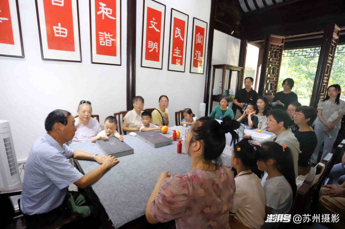 蘇州市新四軍研究會宣講團(tuán)成員、姑蘇區(qū)關(guān)工委“五老”志愿者、“銀發(fā)講師團(tuán)”講師沈蘭生為大家講述蘇州人民抗日和抗日戰(zhàn)爭時期留園的紅色故事,給現(xiàn)場參觀者上了一堂生動鮮活的教育課。