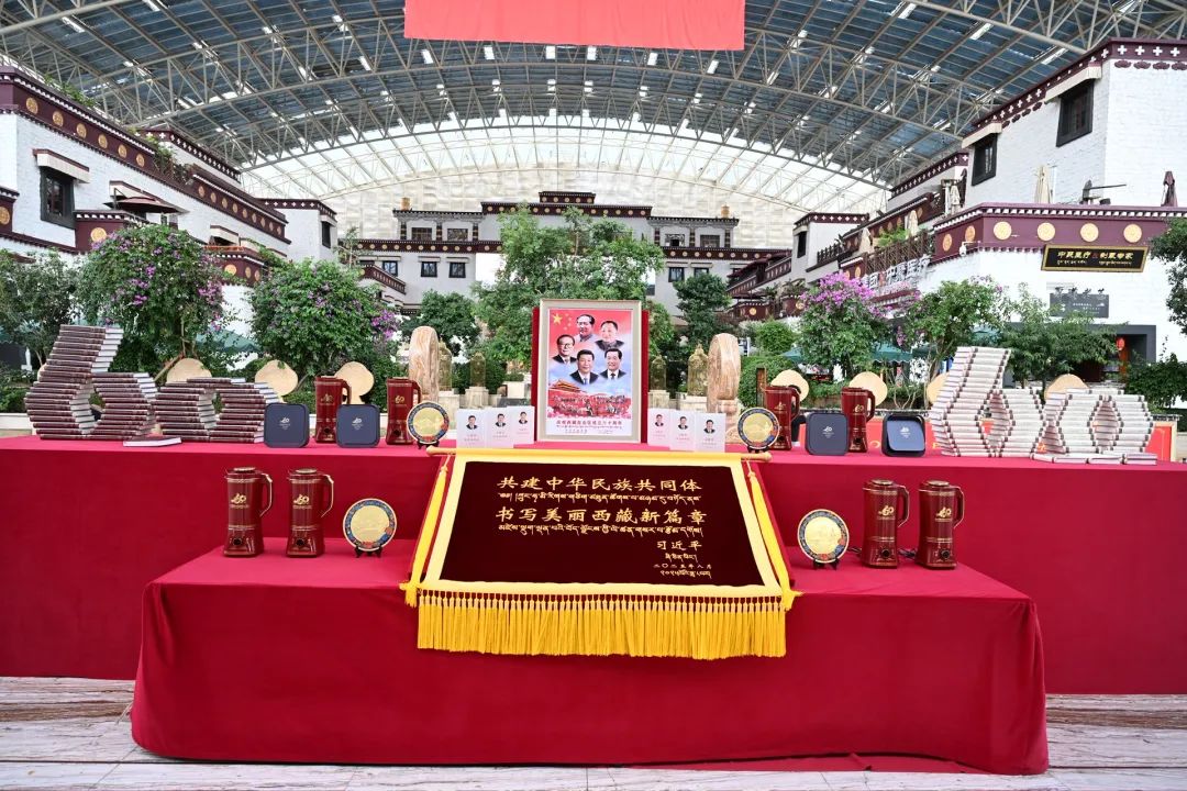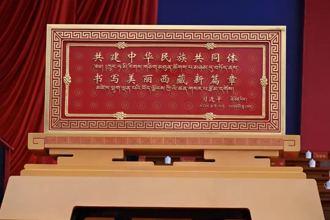 ——“共建中華民族共同體 書寫美麗西藏新篇章”題詞,凸顯西藏與全國各族人民緊密相連、休戚與共的關(guān)系。