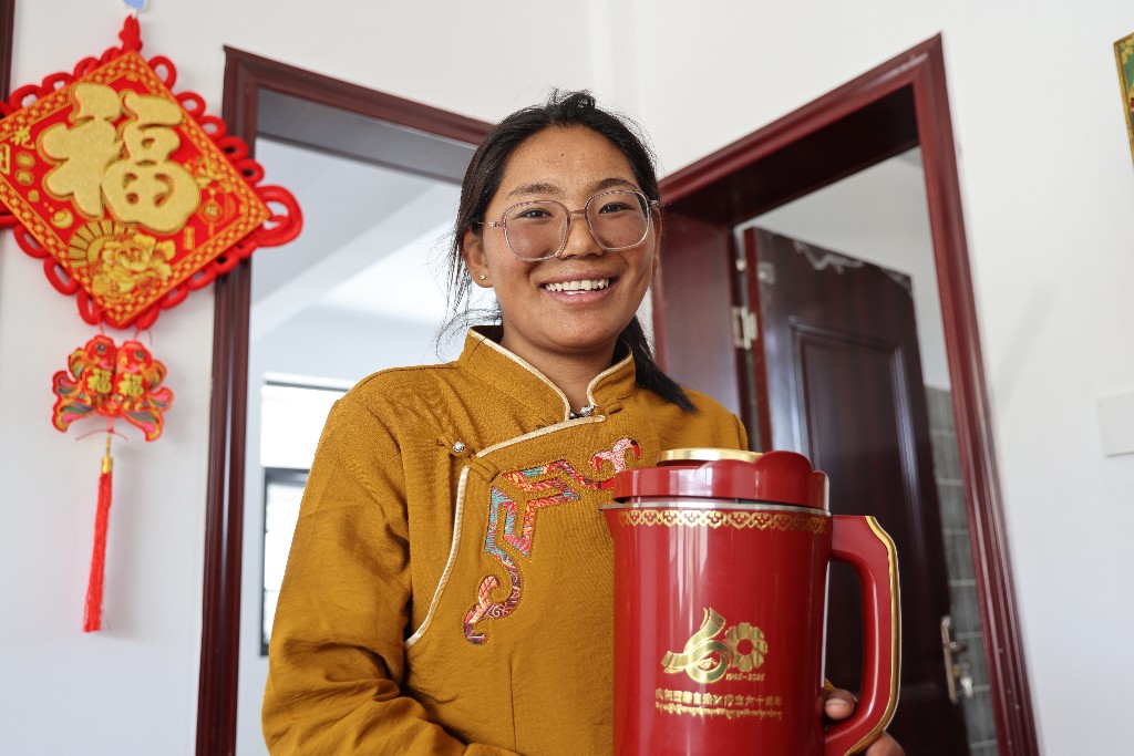 圖為日喀則市定結(jié)縣郭加鄉(xiāng)乃村村民旦增普赤收到酥油茶壺。