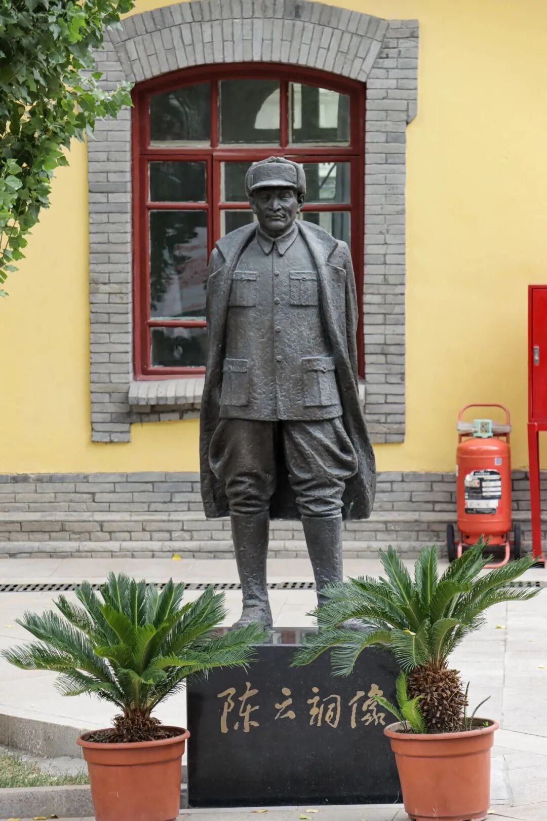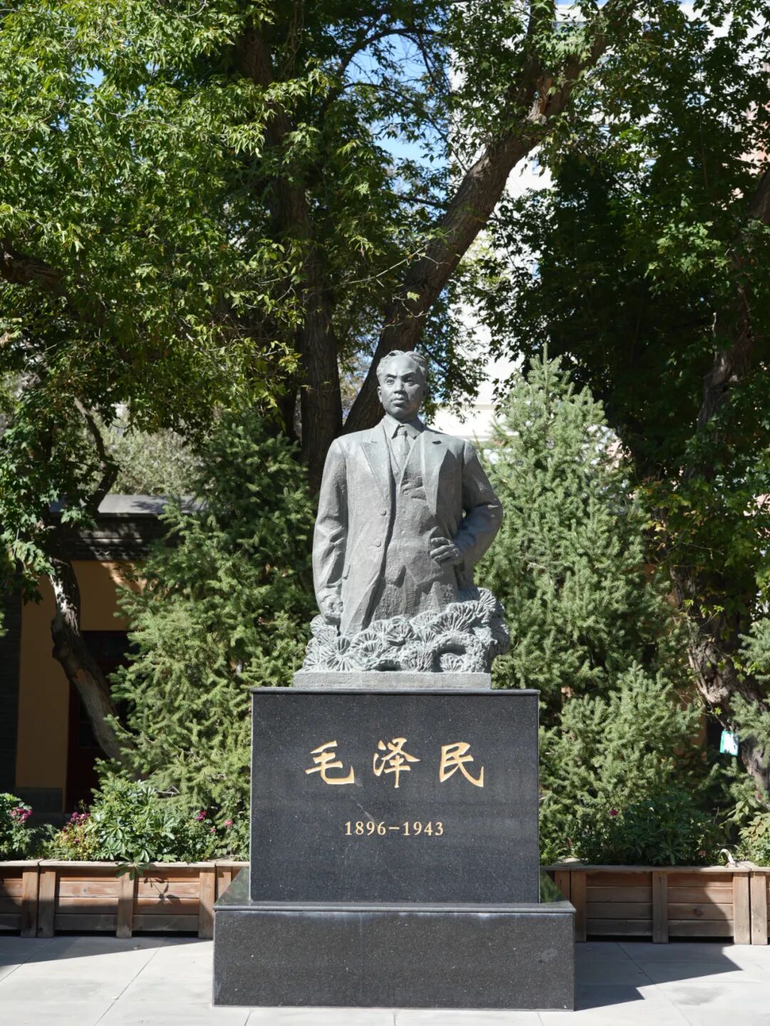 院內(nèi)中心處矗立著一座毛澤民烈士半身銅像,寧靜而莊重,綠蔭成群更添了幾分靜謐。
