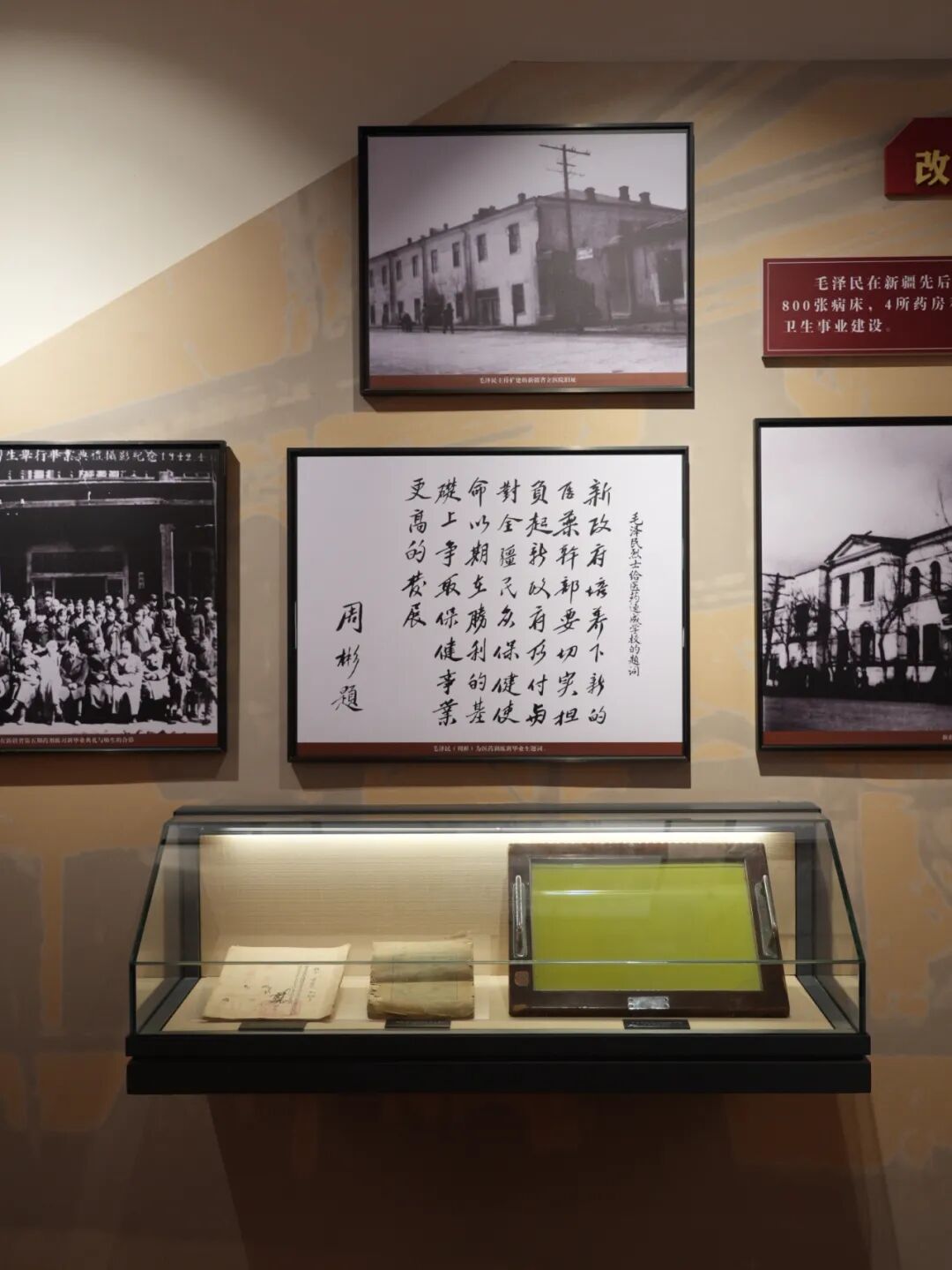 故居的西側(cè)是 2005 年新建的陳列館,集中陳列著毛澤民同志建設(shè)新疆的英雄事跡。
