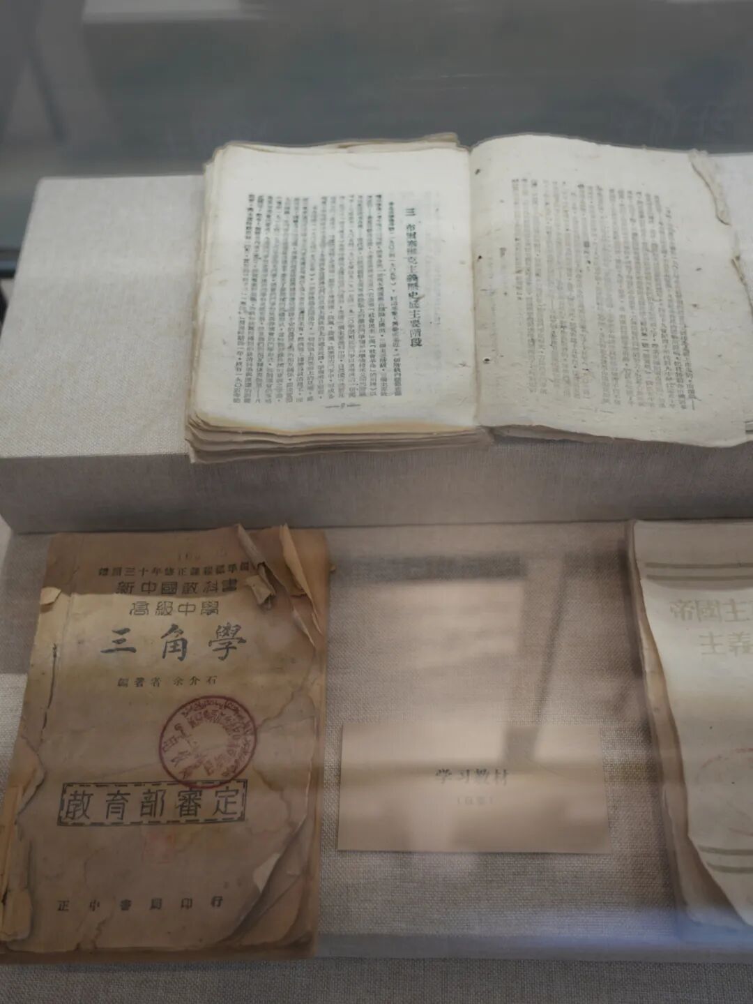 展柜里靜靜躺著一本有些泛黃、邊角磨損的“三角學(xué)”教材。我從語音講解中了解到,在那個物資匱乏的年代,指戰(zhàn)員們學(xué)習(xí)的教材極為珍貴。輾轉(zhuǎn)才能從書店買到,或者由干部和教員們自己編寫。