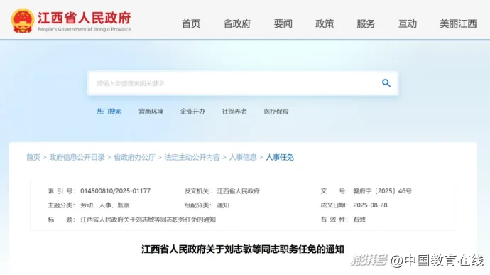 近日,江西省人民政府發(fā)布一批領導干部任免的通知,其中,劉志敏任華東交通大學副校長(試用期一年)。
