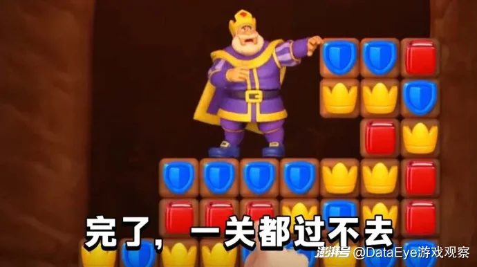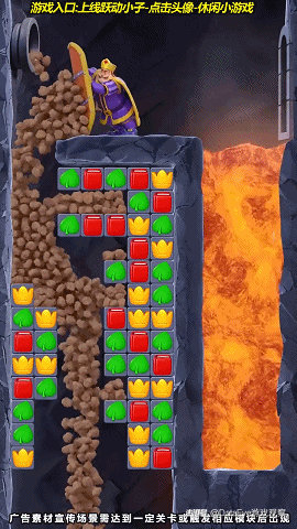 三狼網(wǎng)絡(luò)的關(guān)鍵突破在于將密室逃脫的強(qiáng)敘事與三消的爽快感嫁接?!睹苁页鎏印分?“消除方塊→石頭滾落→拯救國(guó)王” 的核心循環(huán),本質(zhì)是把傳統(tǒng)三消的 “分?jǐn)?shù)積累” 替換為 “劇情推進(jìn)”,用極低的研發(fā)成本(省去 3D 建模、復(fù)雜關(guān)卡設(shè)計(jì))實(shí)現(xiàn)了玩法創(chuàng)新。
