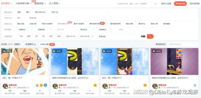 視頻素材中大量為游戲?qū)嶄?,圖片靠 “完了,第一關(guān)都過(guò)不去” 等挑釁文案,降低素材成本,加大素材投放量,直接推高行業(yè)競(jìng)價(jià)成本,導(dǎo)致腰部出價(jià)不足則 “買(mǎi)不到量”,從而形成了行業(yè)壟斷,相當(dāng)于把 “密室三消” 這個(gè)細(xì)分賽道吃透,足以支撐整個(gè)公司的運(yùn)營(yíng)。