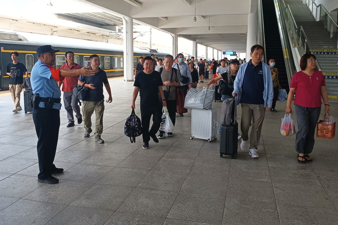 在交通轉(zhuǎn)運疏散方面,湛江西站派出所積極發(fā)揮協(xié)調(diào)作用,與當?shù)亟煌ú块T、公交集團等單位建立聯(lián)動機制:緊急調(diào)配 3 臺公交車補充運力,同時集中統(tǒng)籌出租車資源,通過專人引導、有序分流的方式,確保旅客順利換乘公共交通,有效避免車站周邊交通擁堵,保障旅客離站通道暢通。