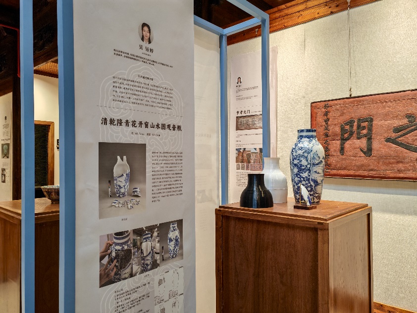 2025屆畢業(yè)作品展作品選登,修復(fù)后的清乾隆青花開窗山水圖觀音瓶