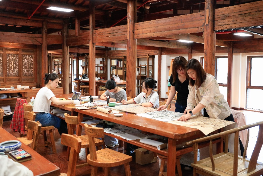 站在狀元樓前,門楣上的木刻“文物保護(hù)與修復(fù)學(xué)院”深深吸引了我們的目光。在新的歷史條件下,這棟昔日的豪華庭院已經(jīng)展現(xiàn)出了新的面貌,賦予了新定位、新功能、新任務(wù)、新作為,煥發(fā)出新時(shí)代的新氣息。今天的狀元樓已經(jīng)成為學(xué)校的一個(gè)重要教學(xué)單位“文物保護(hù)與修復(fù)學(xué)院”。讓學(xué)生在文物中修文物,學(xué)習(xí)文物學(xué),寓教于境、寓境怡情,這種情景性、體驗(yàn)性、趣味性、互動(dòng)性的沉浸式科學(xué)教學(xué)模式,成為了上海視覺藝術(shù)學(xué)院教學(xué)工作的新亮點(diǎn)。