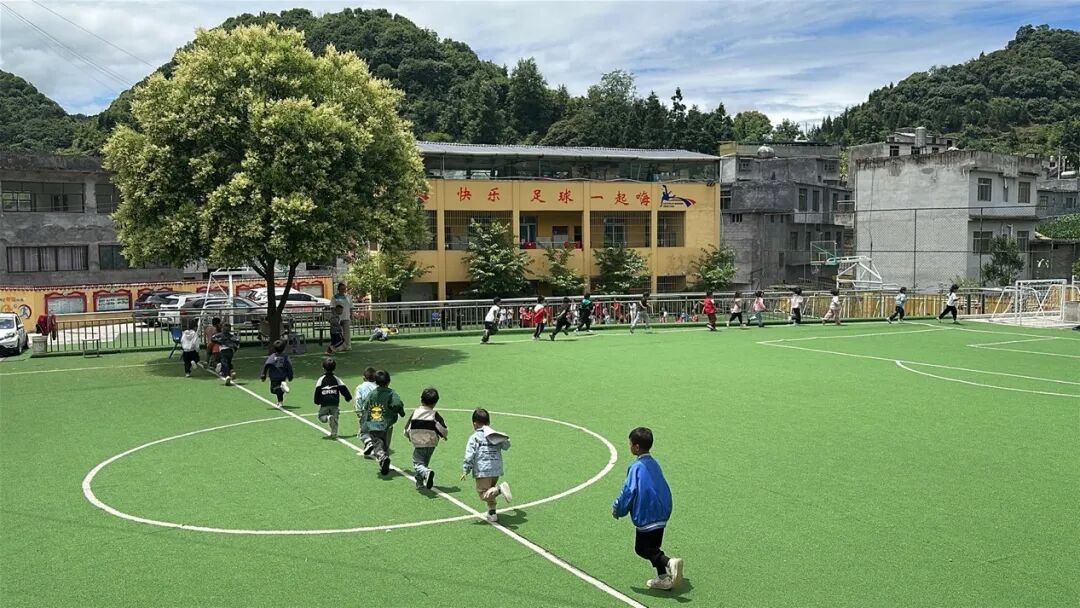 2017年,一位支教老師徐召偉選擇留在學(xué)校,創(chuàng)辦了足球隊(duì)。最初沒有球場(chǎng),孩子們只能在土坡上練習(xí)。后來,學(xué)校自己借債修了球場(chǎng),又在社會(huì)愛心人士的支持下,終于擁有了一塊真正的標(biāo)準(zhǔn)場(chǎng)地。