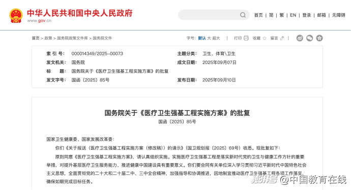 近日,國務(wù)院批復(fù)了國家衛(wèi)生健康委、國家發(fā)展改革委報(bào)送的《醫(yī)療衛(wèi)生強(qiáng)基工程實(shí)施方案》,要求因地制宜推動醫(yī)療衛(wèi)生強(qiáng)基工程各項(xiàng)工作落實(shí),確保如期完成目標(biāo)任務(wù)。