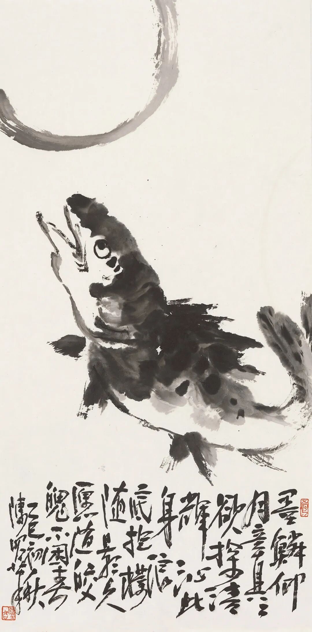 《墨鱗仰月意真真》69cmx34.5cm-紙本水墨-2025年