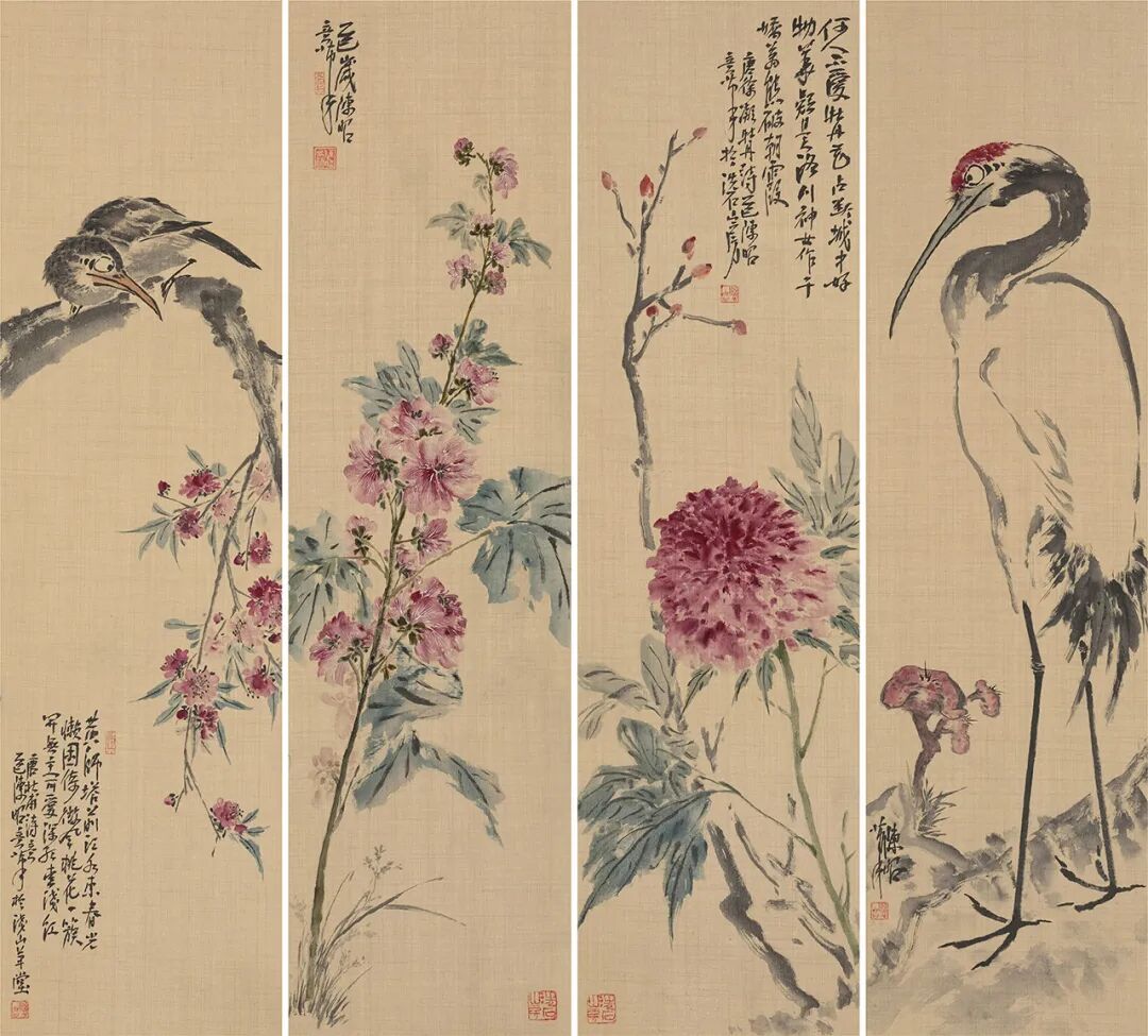 《芳禽雅韻四條屏》90cmx25cmx4-絹本設色-2025年