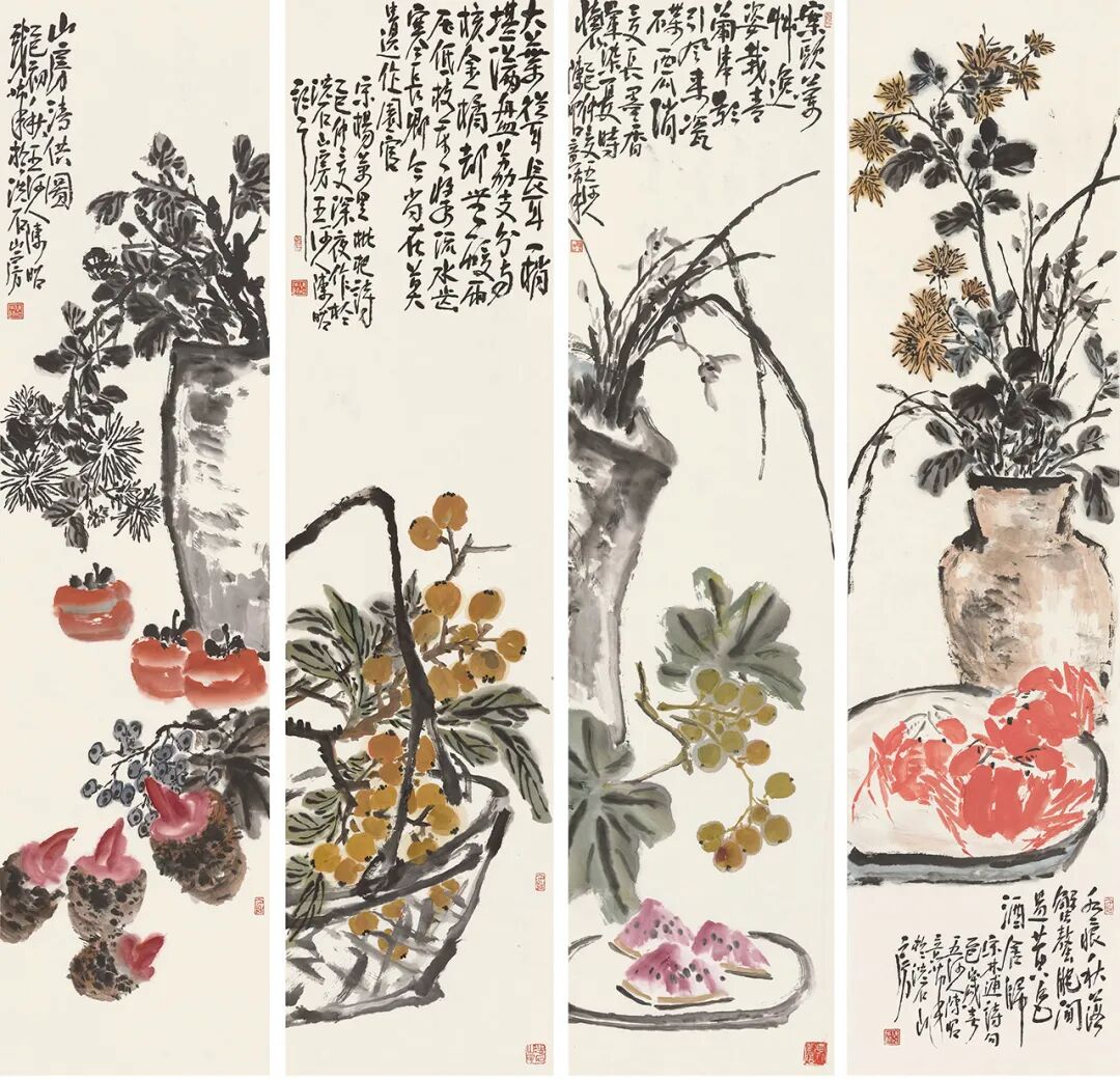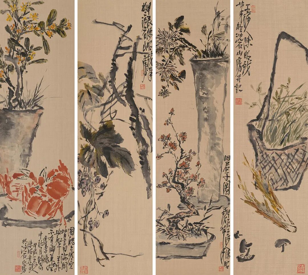 《山房清供四條屏》138cmx34.5cmx4-紙本設色-2025年
