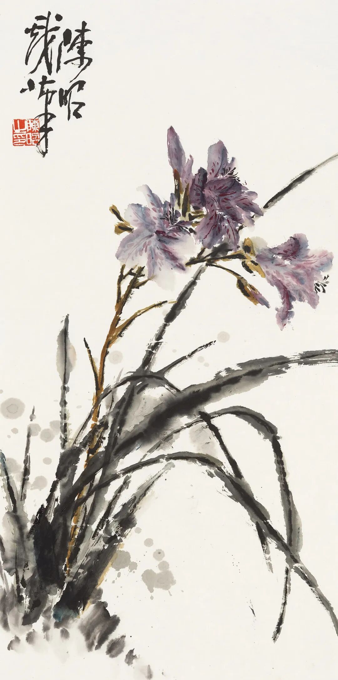 《鳶尾花開》68.5cmx34.5cm-紙本設色-2025年