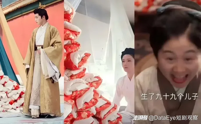 前有一胎99子的《麒麟送子天降喜福》,后有盲女外賣員和植物人患者一夜情懷孕的《遲先生太太到處跑》,甚至還有虛構(gòu)短劇《特朗普愛上白宮做保潔的我》,雷人短劇同樣屢見不鮮。