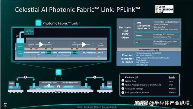 Celestial 正在推出其專利的光存儲(chǔ)器接口橋接器 (OMIB),作為 NVLink 的替代方案。OMIB 類似于英特爾的 EMIB、臺(tái)積電的 CoWoS 和三星的 IQE 等先進(jìn)封裝技術(shù)。OMIB 可在芯片內(nèi)部以及與其他芯片之間提供光子連接。Celestial 的控制電路的發(fā)送/接收部分采用臺(tái)積電的 4 納米和 5 納米工藝。