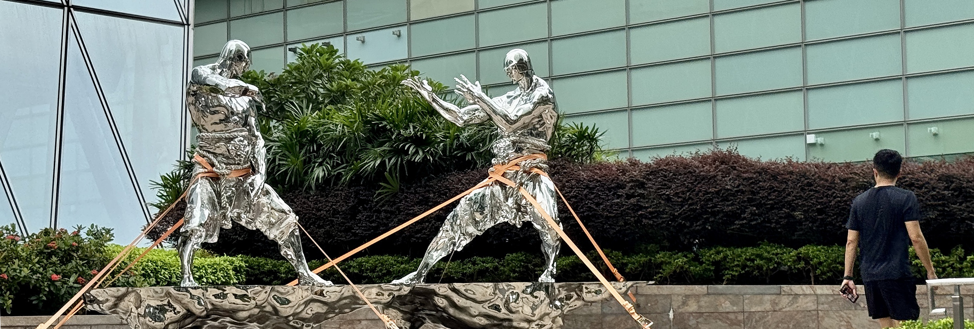 9月23日上午,香港,中環(huán)交易廣場的雕塑已用繩索固定,做好防風(fēng)措施。
