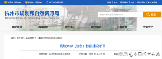 來源:杭州市行政審批服務(wù)管理辦公室、杭州市規(guī)劃和自然資源局、教育部公示文件、媒體相關(guān)報(bào)道等。