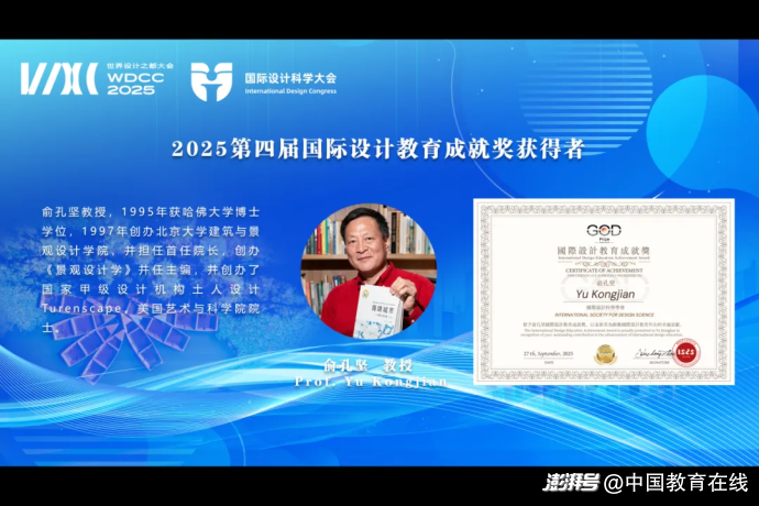 據(jù)“北大發(fā)布”微信公眾號(hào)消息,2025年9月27日,在上海召開的首屆國(guó)際設(shè)計(jì)科學(xué)大會(huì)上,國(guó)際設(shè)計(jì)科學(xué)學(xué)會(huì)追授俞孔堅(jiān)教授 “國(guó)際設(shè)計(jì)教育成就獎(jiǎng)”,以表彰他在國(guó)際景觀設(shè)計(jì)教育領(lǐng)域的卓越建樹,及對(duì)全球設(shè)計(jì)科學(xué)事業(yè)發(fā)展的深遠(yuǎn)貢獻(xiàn)。