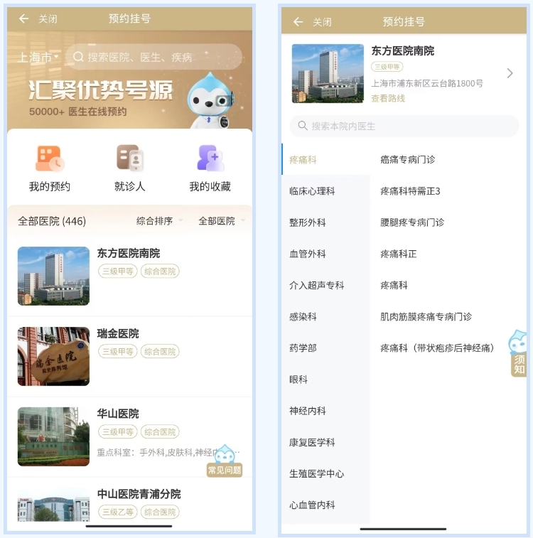 選擇需要就診的醫(yī)院、就診科室,點(diǎn)擊想預(yù)約的專(zhuān)家即可查看可預(yù)約時(shí)段列表進(jìn)行預(yù)約,還支持“專(zhuān)家門(mén)診”“普通門(mén)診”“專(zhuān)病門(mén)診”三種門(mén)診模式選擇。