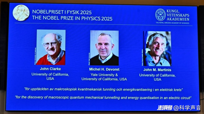 2025年諾貝爾物理學(xué)獎(jiǎng)授予英國物理學(xué)家約翰·克拉克(John Clarke)、法國物理學(xué)家米歇爾·H·德沃雷特(Michel H. Devoret)和美國物理學(xué)家約翰·M·馬丁尼斯(John M. Martinis),以表彰他們“在電路中發(fā)現(xiàn)宏觀量子力學(xué)隧穿效應(yīng)與能量量子化現(xiàn)象”。