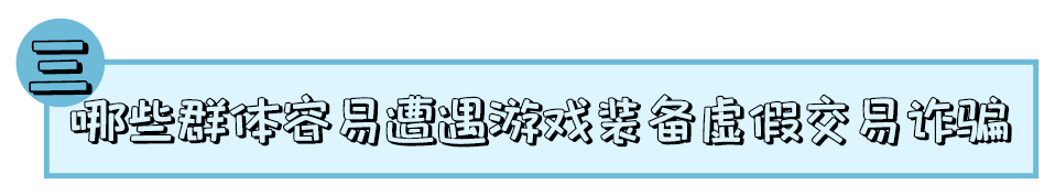 許多“寶媽”在家?guī)奁陂g會玩一些游戲,對買賣游戲裝備創(chuàng)收比較感興趣,容易成為騙子的目標;